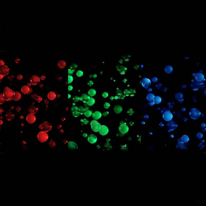 Mit LED-Leuchten können Sie farbige Blasen erzeugen. Der Rauch in den Blasen ist weiß und fängt das Licht der LED ein.